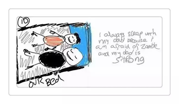 10、我总是跟爸爸睡在一起,因为我害怕僵尸,而爸爸很强壮。